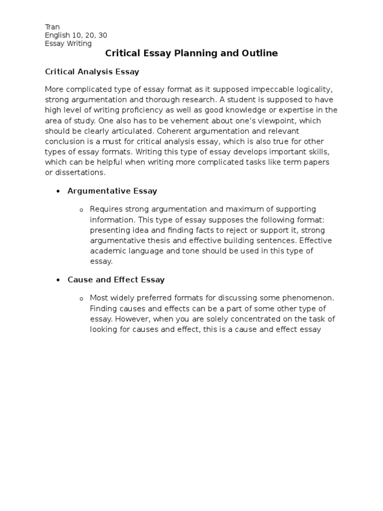 The best way to avoid this mid-essay disaster is to plan ahead: you need to write an Essay Plan! Essay planning critical essay plan one of the most important skills I teach my students. When I have one-to-one tutorials with my students, critical essay plan, I always send them off with an essay plan and clear goals about what to write.
